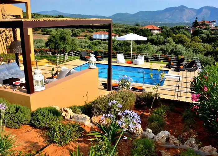 Az Olümpia városától körülbelül 30 percnyi autóútra található Verde rendelkezik ingyenes parkolóval, kinti úszómedencével és allergiamentes szobákkal. Ez villa laptop méretű széffel, többcsatornás TV-vel és tornáccal felszerelt szobákat kínál.